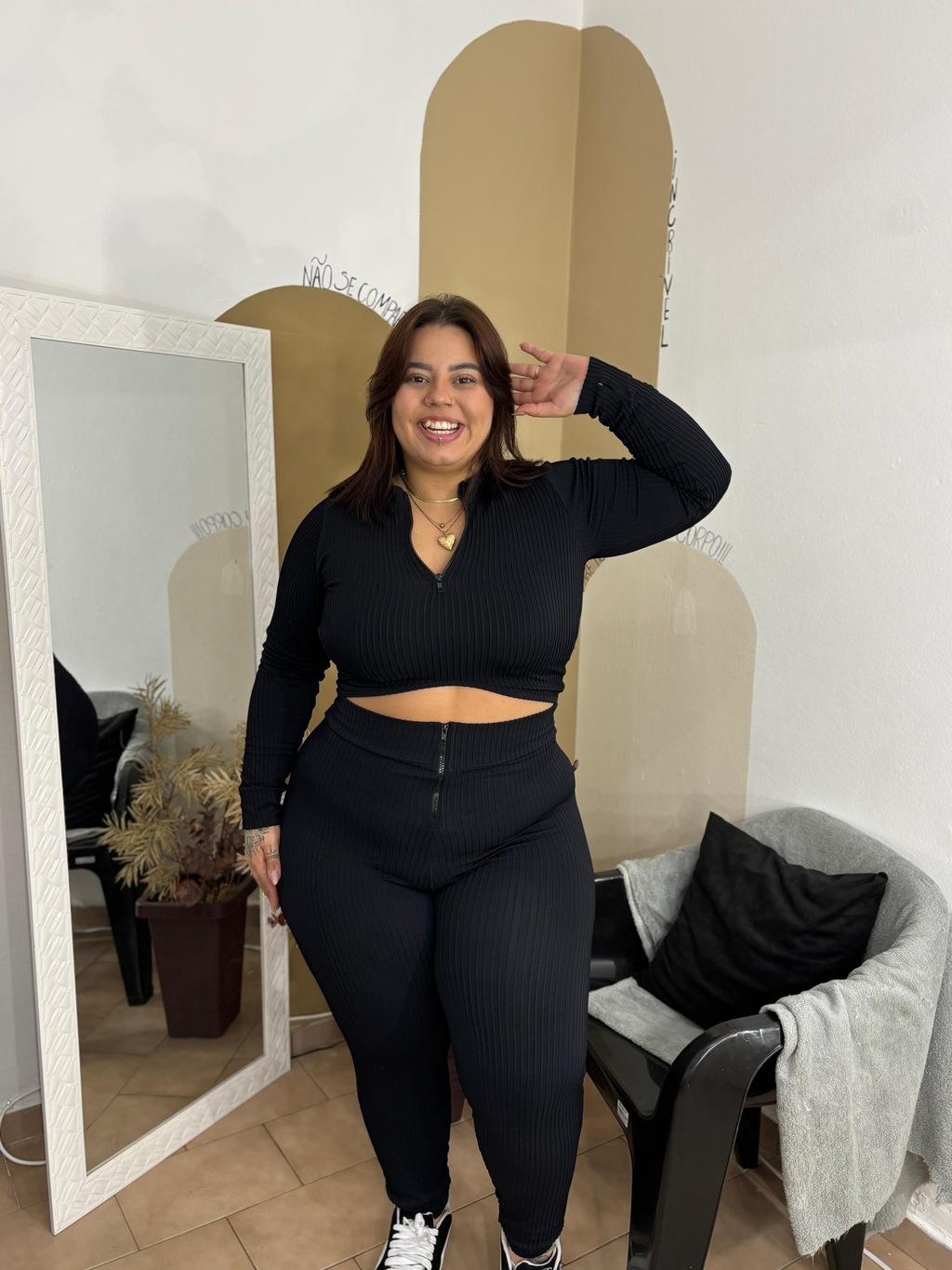Descubra o Conjunto Thiffany, feito em tecido canelado premium 3D que proporciona textura e conforto excepcionais. O cropped, sem bojo, valoriza seu corpo com naturalidade, enquanto a calça apresenta um prático zíper frontal para facilitar o uso.